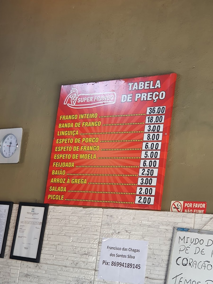 Introducing Super Frango, a standout chicken restaurant nestled in the heart of Parnaíba, Ceará. Known for its mouthwatering grilled chicken, Super Frango has quickly earned a reputation as the best in town. Patrons rave about the perfectly roasted poultry, highlighting its rich flavors and tender texture that keep them coming back for more. The menu boasts a variety of chicken dishes that cater to all tastes, ensuring there's something for everyone. While the food shines, some customers note that service could be friendlier. However, many appreciate the quick turnaround and excellent pricing, making it a top choice for those seeking quality meals without breaking the bank. If you're in the area, indulge in Super Frango’s delicious offerings, which promise not only satisfaction but also a welcoming community vibe. Experience culinary excellence that reflects the spirit of Parnaíba!